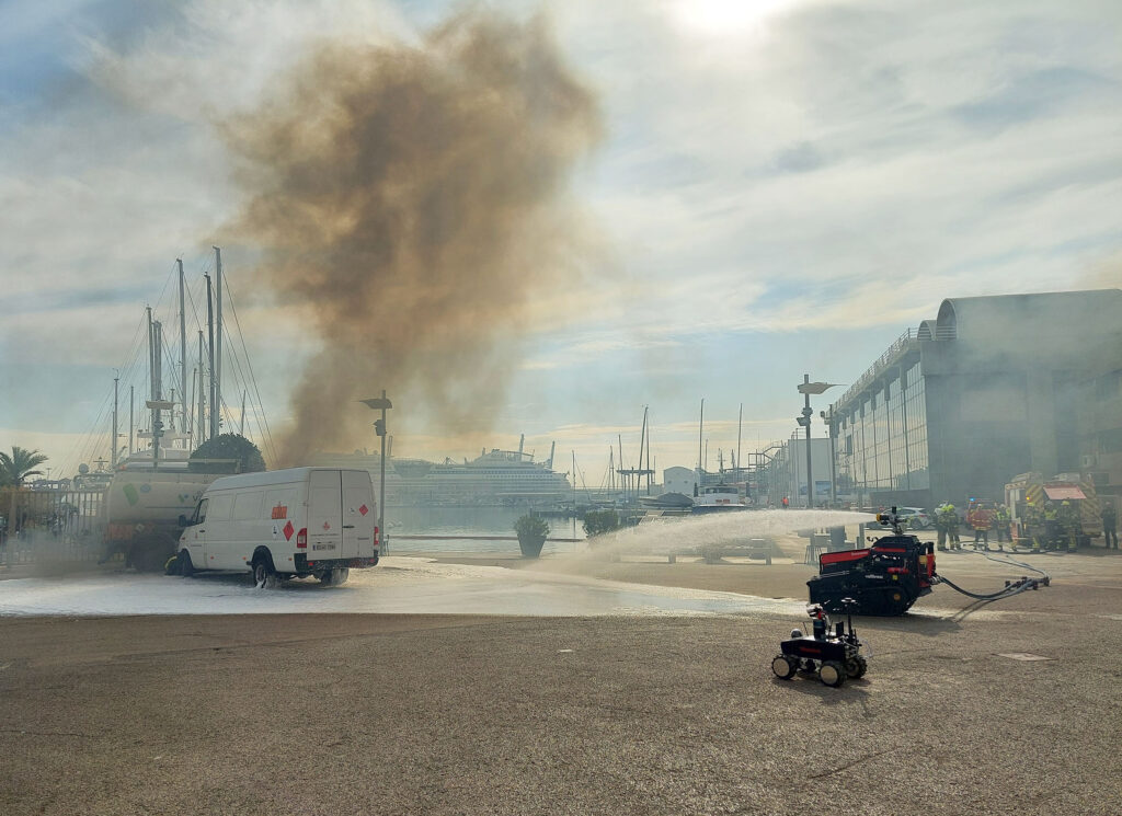 València, 16 February 2023.- Robots with gas sensors or specialised in transporting material, drones with thermal cameras or waistcoats for emergency teams with vital signs monitoring… are some of the innovative technologies that have been tested this morning in an emergency situation in the Port of Valencia. The Clock Building and the adjoining esplanade hosted a demonstration of the RESPOND-A project, an initiative that aims to improve the information management systems of emergency team professionals by combining different cutting-edge technologies.
