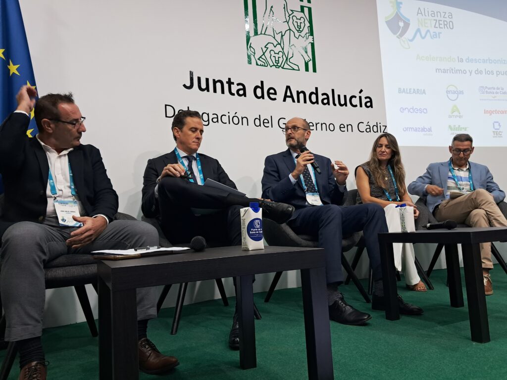This edition, organized jointly by the Technical Secretariat of the Alianza Net-Zero MAR, a task carried out by Fundación Valenciaport, and by the entity’s Board of Directors, with the collaboration of the Port Authority of the Bay of Cádiz, Endesa, and PTP Group, was inaugurated by Santiago Yanes, vice president of the Alianza Net-Zero MAR; Diego Nieves, Director of PTP Spain; Juan Antonio Garrigosa, director of B2G Products and Services for Retail Iberia at Endesa; Mª Teófila Martínez, president of the Port Authority of the Bay of Cádiz; Mercedes Colombo, delegate of the Government of Andalusia; and Blanca Flores, deputy delegate of the Government of Spain in Cádiz.