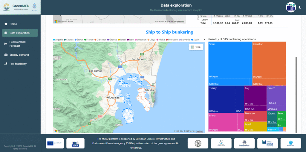 One of the main results of the project has been the launch of the Mediterranean Sustainable Shipping Observatory (MSSO), a digital platform that centralises and analyses key information on maritime traffic, energy consumption, emissions and bunkering infrastructure.