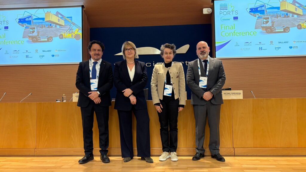 Valencia, December 3th, 2025.- Today, the Port of Valencia hosted the final conference of the H2PORTS project, a pioneering initiative that has enabled the testing of a hydrogen-powered ReachStacker and a 4×4 tractor unit in real-life operations, as well as a mobile refuelling station for this clean fuel.