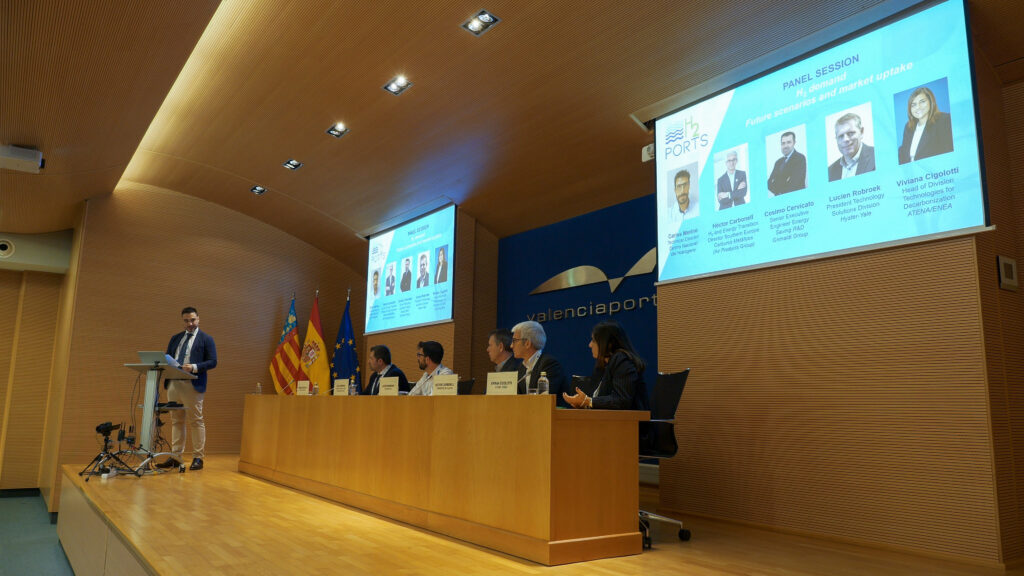 • The H2PORTS hydrogen project held its final conference today, bringing together 30 speakers and more than 150 participants in the auditorium of the Port Authority of Valencia.