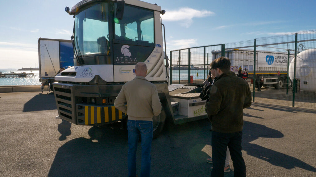 Finally, participants had the opportunity to see how the hydrogen refuelling station works up close. The location of the two pilot vehicles in different port terminals necessitated a flexible solution: a mobile hydrogen refuelling station. This innovative mobile unit was custom-designed by the National Hydrogen Centre (CNH2) and operated by Carburos Metálicos (part of the Air Products group), the partner responsible for supplying renewable hydrogen for the project.