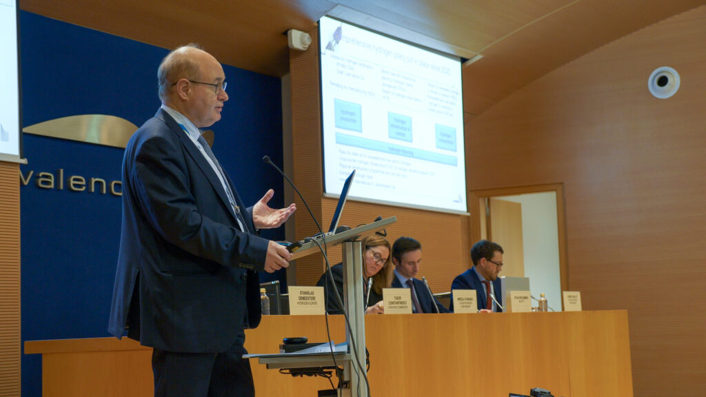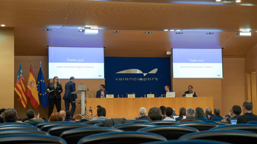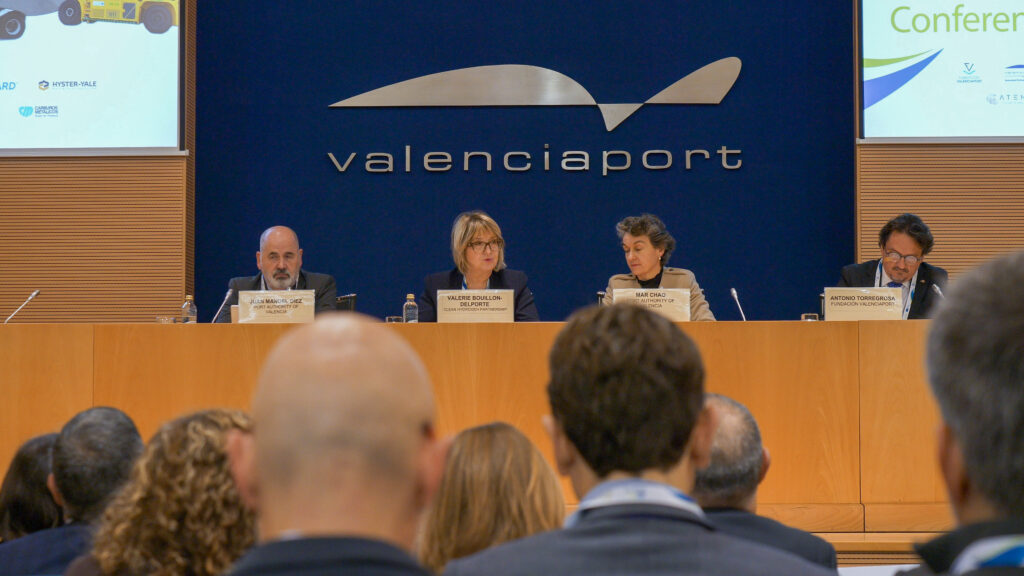 The opening of the conference featured speeches by Mar Chao, president of the APV; Valerie Bouillon-Delporte, executive director of the Clean Hydrogen Partnership (the project’s funding body); Antonio Torregrosa, managing director of Fundación Valenciaport; Torsten Klimke, head of the Ports and Inland Navigation Unit at DG MOVE; and Juan Manuel Díez, head of Innovation at the APV.