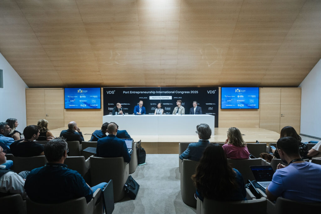 A continuación, se desarrolló una mesa redonda sobre PIN, la red de puertos innovadores co-fundada por Opentop, donde se presentó el desafío global PIN Challenge. Esta sesión contó con la participación de representantes de hubs de innovación portuaria como The PIER (Halifax), homePort (Hamburgo), Port of Tyne (Reino Unido) y Blue Economy Incubator del Puerto de San Diego; en una sesión moderada por Salvador Furió, director de Innovación de la Fundación Valenciaport. Asimismo, se dio la bienvenida oficial a los nuevos miembros: thinkport VIENNA, primer puerto fluvial de la red y al puerto de Esbjerg (Dinamarca).